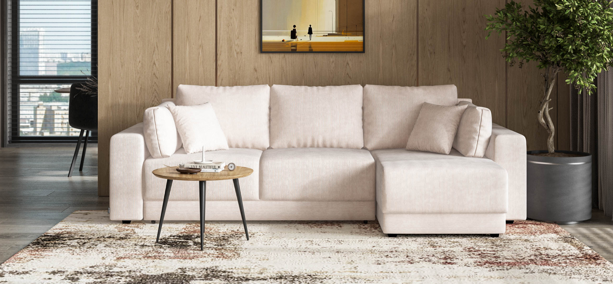 Угловой диван Босс Прайм ХЛ Вельвет Корд бежевый