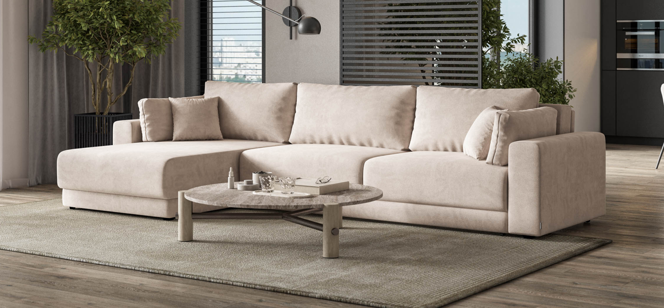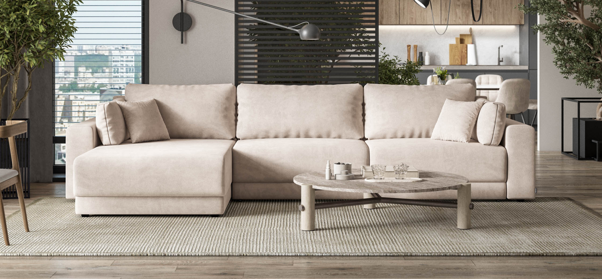 Угловой диван Босс Прайм Макс - это сочетание современного дизайна и продуманной эргономики, создающее уютную атмосферу в любом интерьере. Визуально разделённое сиденье, широкие мягкие подлокотники и пышные подушки разного размера обеспечивают не только эстетическую привлекательность, но и максимальный комфорт.