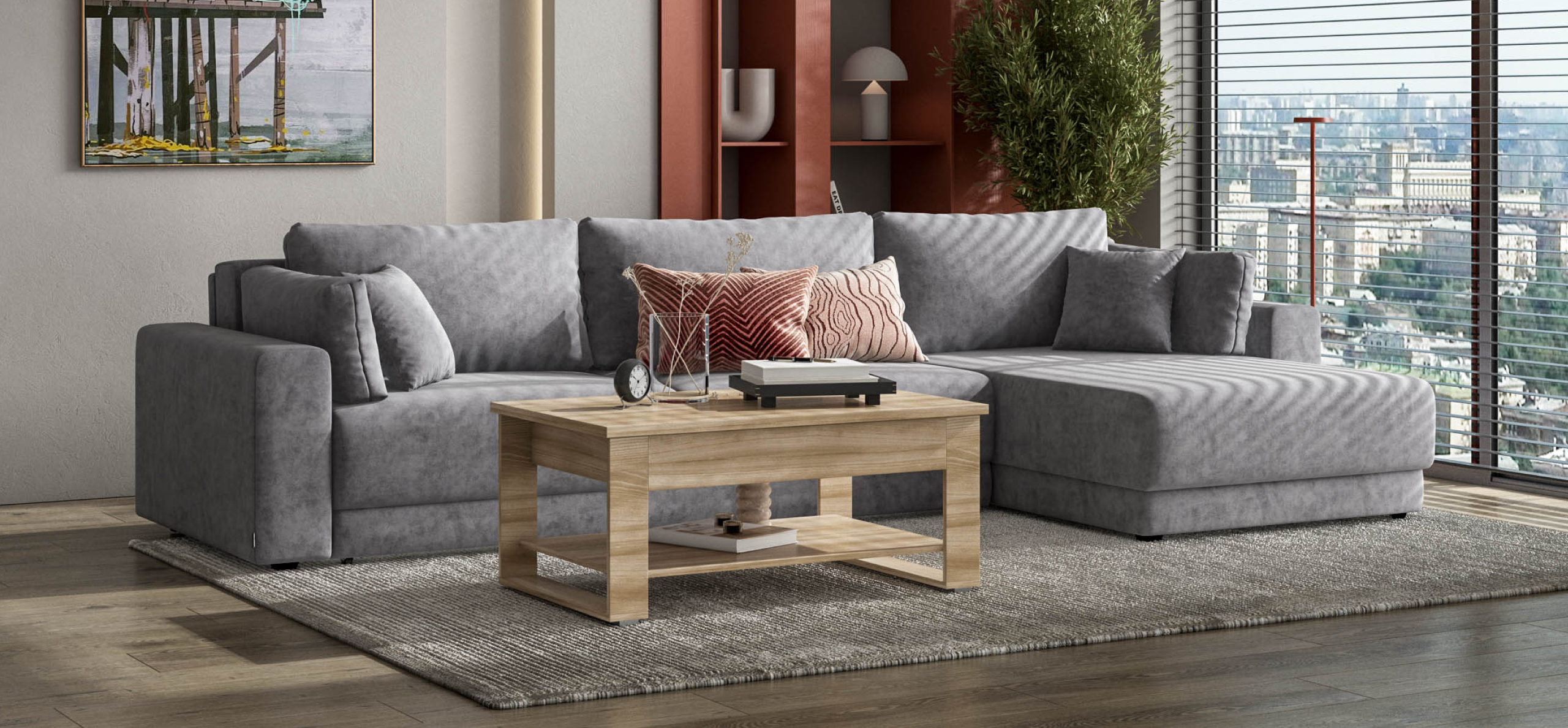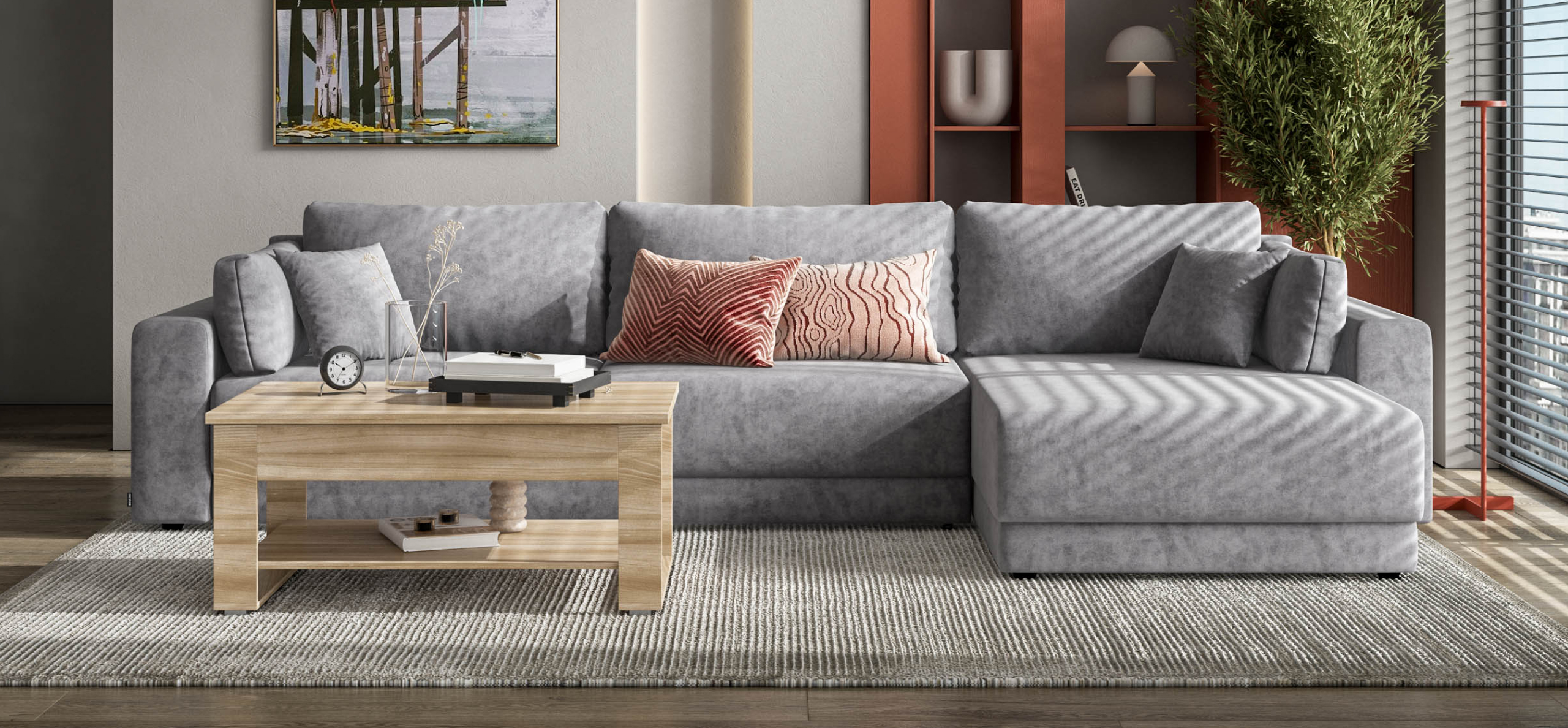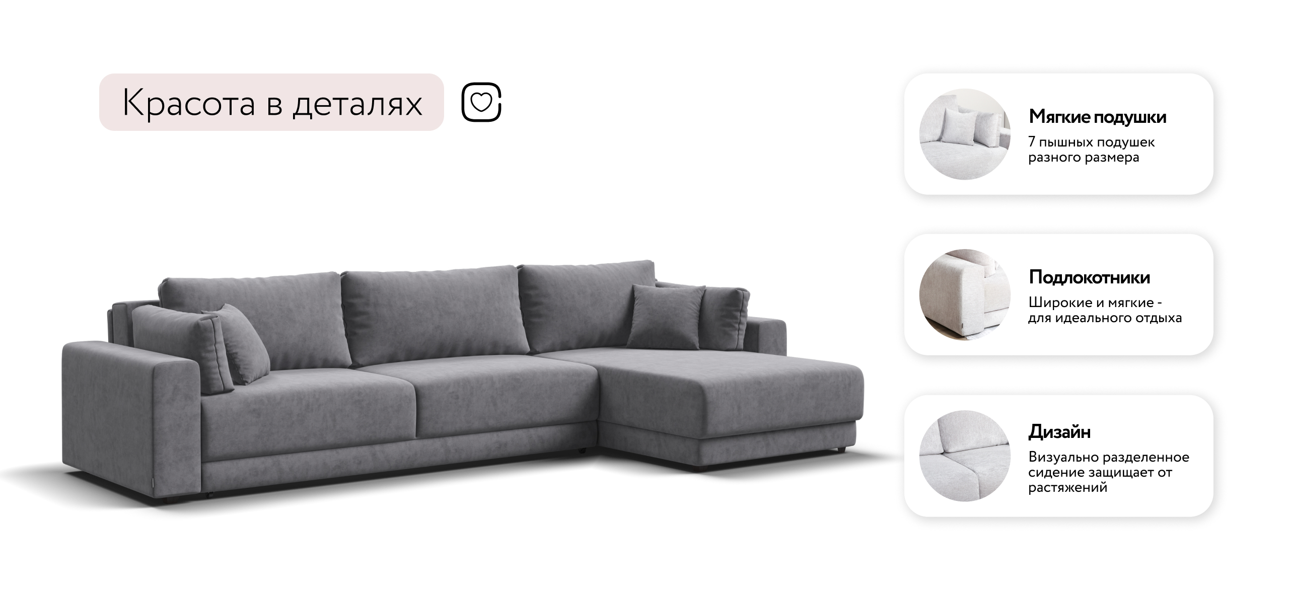 Угловой диван Босс Прайм Макс - это сочетание современного дизайна и продуманной эргономики, создающее уютную атмосферу в любом интерьере. Визуально разделённое сиденье, широкие мягкие подлокотники и пышные подушки разного размера обеспечивают не только эстетическую привлекательность, но и максимальный комфорт.​