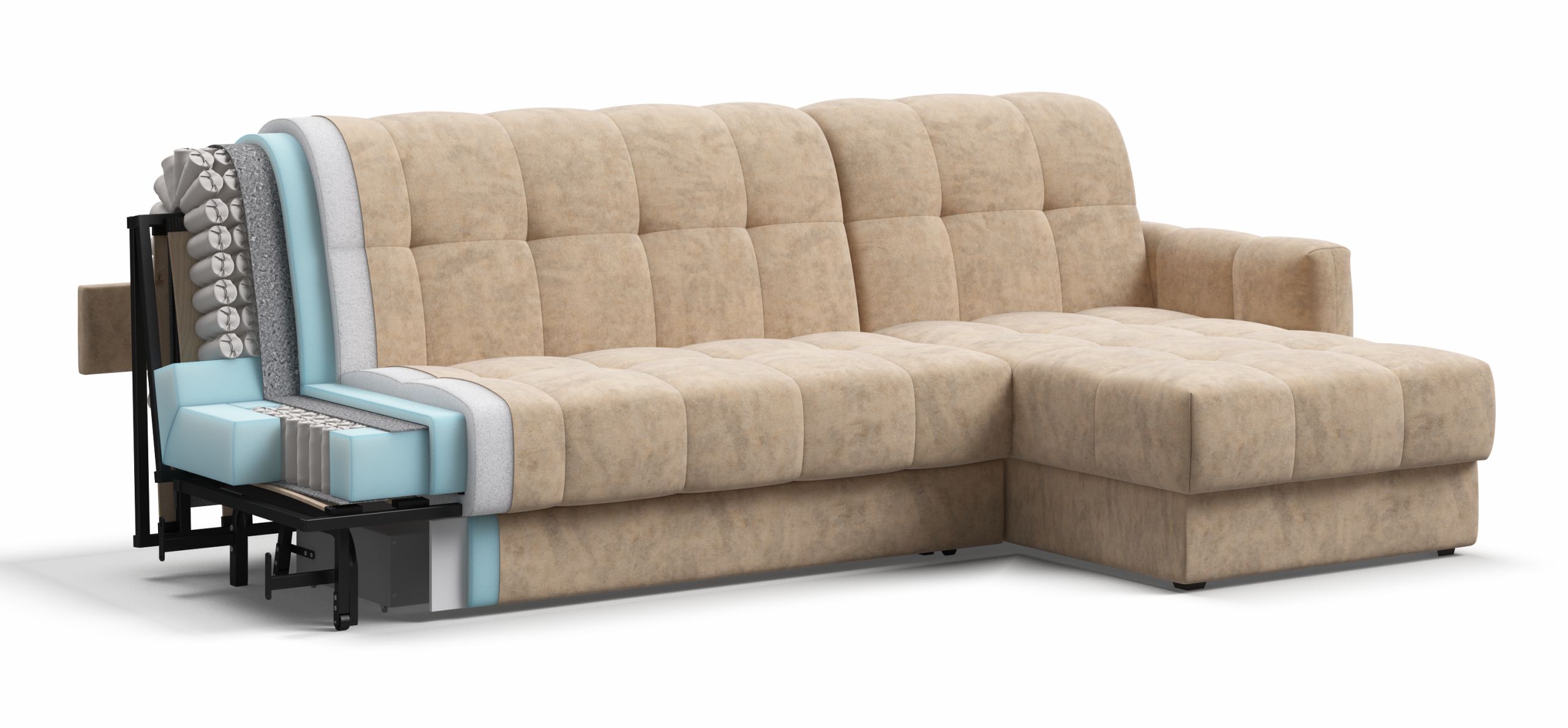 Инновационный анатомический матрас в диване, высотой 15 см., выполнен из полноценного независимого пружинного блока Босс Фит