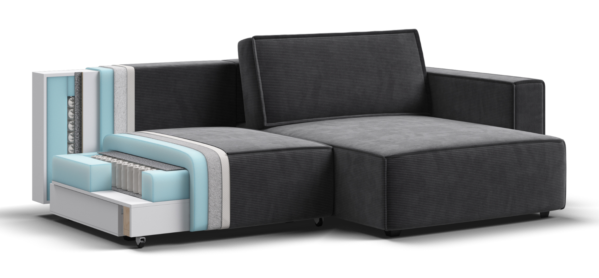 BOSS SOFT Modool – Модульная система в стиле лофт. Сочетание надежности, стиля и функциональности. Суперудобная глубокая посадка и высокоэластичная пена с дополнительным слоем PERIOTEK создадут максимальный комфорт во время отдыха.Широкие прямоугольные подлокотники, строгая симметрия и минималистичная отделка идеально дополнит современный интерьер Вашей гостиной.Модульная система позволит создать любую комбинацию от уютного кресла до огромного дивана для большой компании.Простой и надежный механизм еврокнижка с легкостью превратит модульную систему в комфортное спальное место.