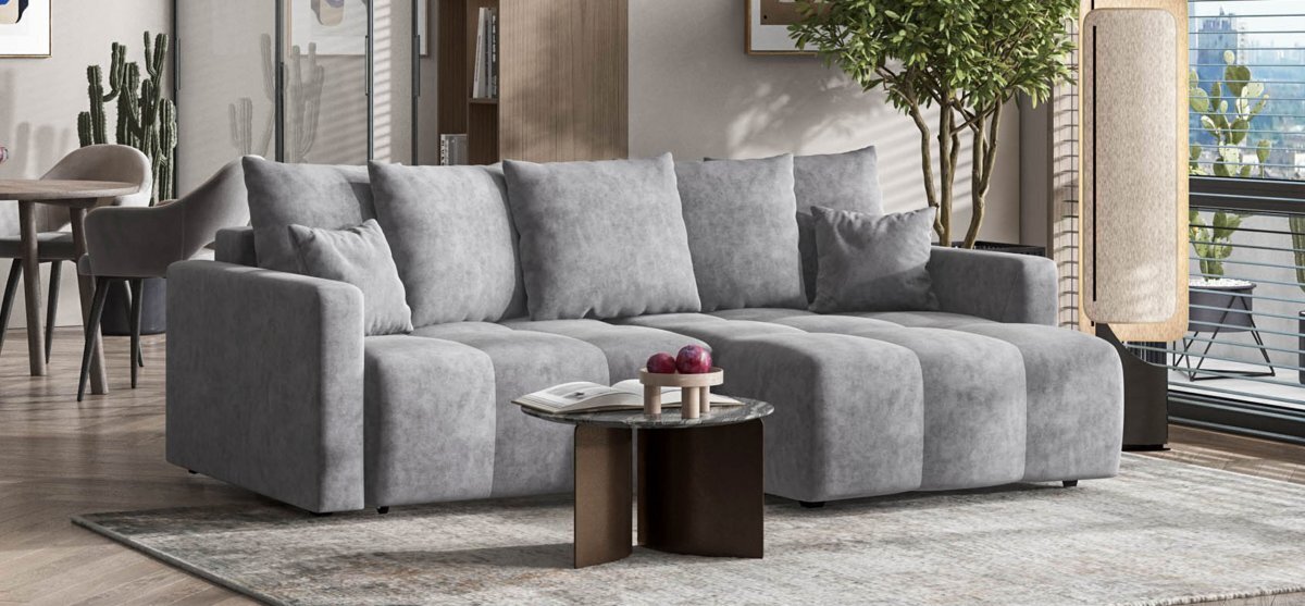 Простой и надежный механизм еврокнижка позволяет ставить диван вплотную к стене