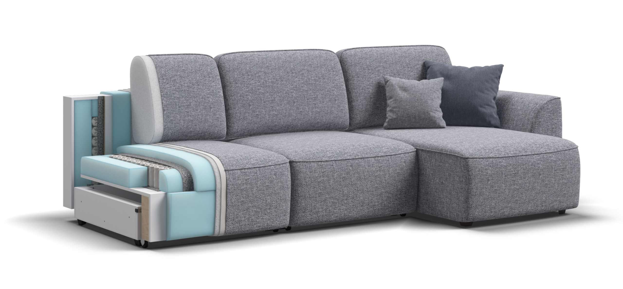 Комфортная посадка, скругленные линии, объемные подушки - диван, который наполнит ваш дом уютом и комфортом. Универсальный угол позволит Вам самостоятельно выбрать его положение при сборке, а каждое посадочное место можно выдвинуть вперед и получить П-образную форму дивана, на котором с комфортом разместится большая компания. А в разложенном виде диван превращается в комфортное спальное место.